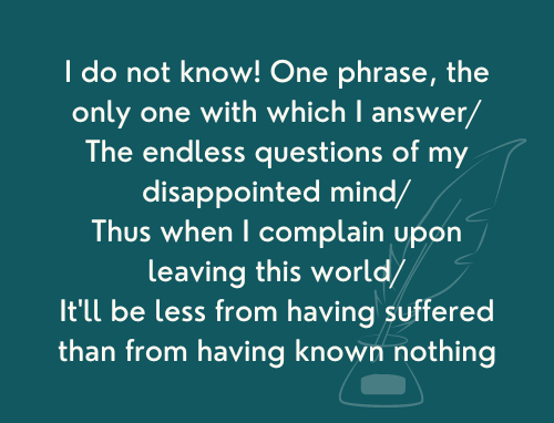 Louise-Victorine Ackermann (1813-1890) was a French writer known for her somber and philosophical poems, as well as her autobiographical work Thoughts of a Lonely Woman (1883)