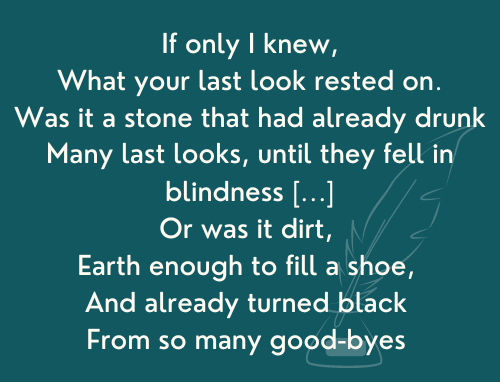 Nelly Sachs (1891-1970) was a German-born Jewish writer whose poetry reflects the plight of Jewish people under the tyranny of the Nazis during World War II. She was the winner of the Nobel Prize in Literature in 1966.