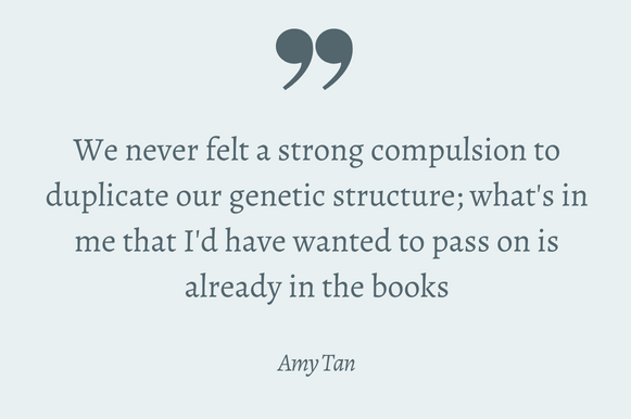 “We never felt a strong compulsion to duplicate our genetic structure; what’s in me that I’d have wanted to pass on is already in the books.”