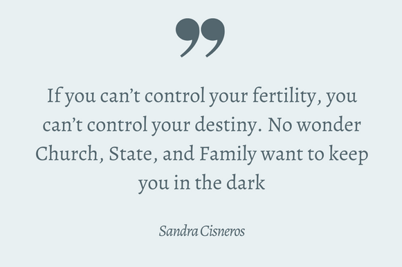 “If you can’t control your fertility, you can’t control your destiny. No wonder Church, State, and Family want to keep you in the dark. […] La Lupe was damn dangerous, an ideal so lofty and unrealistic it was laughable. Did boys have to aspire to be Jesus? I never saw any evidence of it. They were fornicating like rabbits while the Church ignored them and pointed us women toward our destiny—marriage and motherhood. The other alternative was putahood. […] As far as I could see, la Lupe was nothing but a Goody-Two-Shoes meant to doom me to a life of unhappiness. Thanks, but no thanks. Motherhood and/or marriage were anathema to my career.”